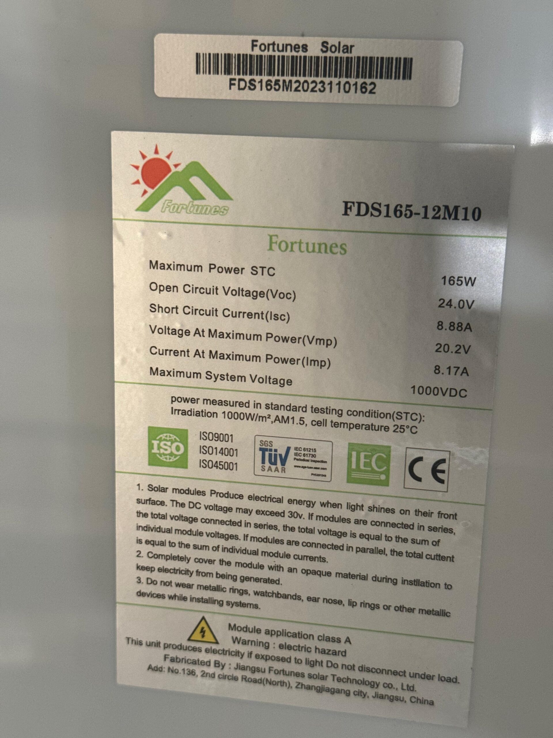১৬৫ ওয়াট ফরচুর সোলার প্যানেল-best fortune solar panel